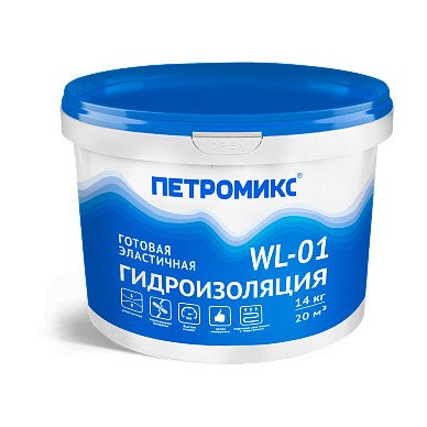 Готовая эластичная обмазочная гидроизоляция WL-01 ПЕТРОМИКС, 14 кг.
