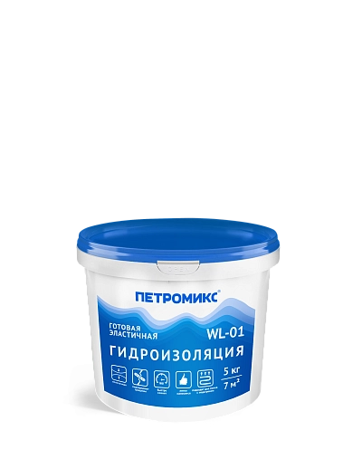 Готовая эластичная обмазочная гидроизоляция WL-01 ПЕТРОМИКС, 5 кг.
